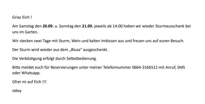 Verkauf jeden Samstag von 09:00-14:00 möglich!